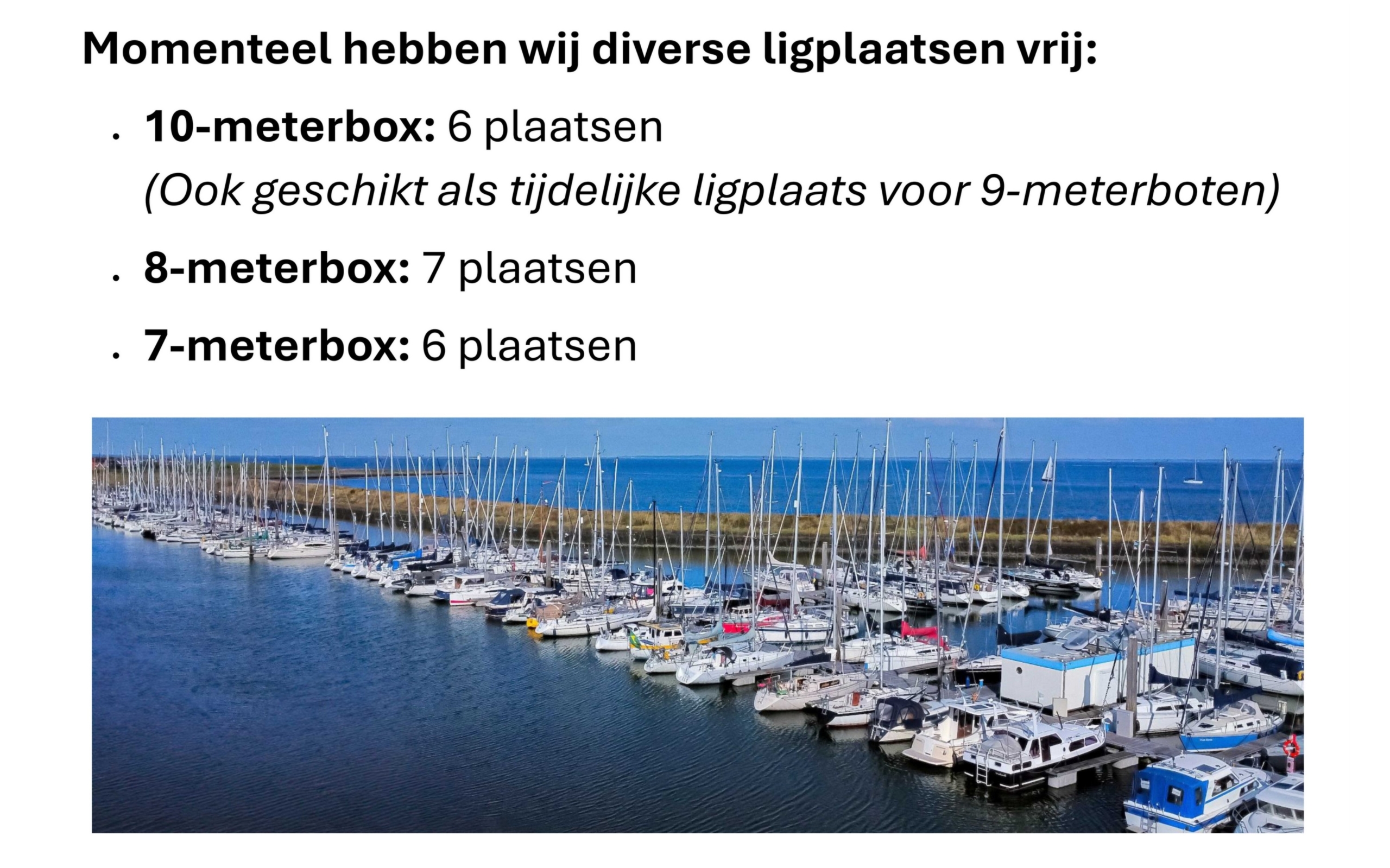 Geen probleem! Je kunt je eenvoudig en geheel vrijblijvend aanmelden om twee keer per jaar een e-mail te ontvangen met een overzicht van de beschikbare ligplaatsen. Er zijn geen verplichtingen — niet voor jou en niet voor ons. Na drie jaar verwijderen we je automatisch van de mailinglijst, tenzij je eerder aangeeft dat je er liever vanaf wilt.